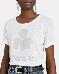 Product Details Finished with their flocked logo, the French label takes a chill approach to logomania with their Koldi T-shirt in airy linen jersey. - Fabric: 100% linen - Hand wash cold - Imported - Model is 5'10" and wearing size S - Length from shoulder to hem: 25.5"