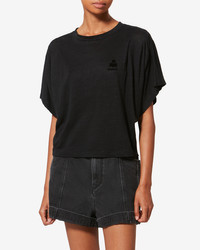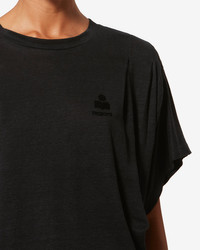Plain-colored linen T-shirt with logo Round neckline with ribbed finishes Short sleeves Tone-on-tone "Marant" logo printed on the chest Relaxed fit Style: TS0313FAA1N09E01BK KYANZAE 100% linen Care & Sustainability Cold hand wash with suitable detergent For more details, see the instructions on the composition label