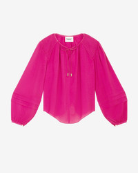 100% recycled polyester Purple crepe top with puffed sleeves Lace-up collar Pleats and gathers details Style: HT0314FAB1J05E86OR LAMAYA