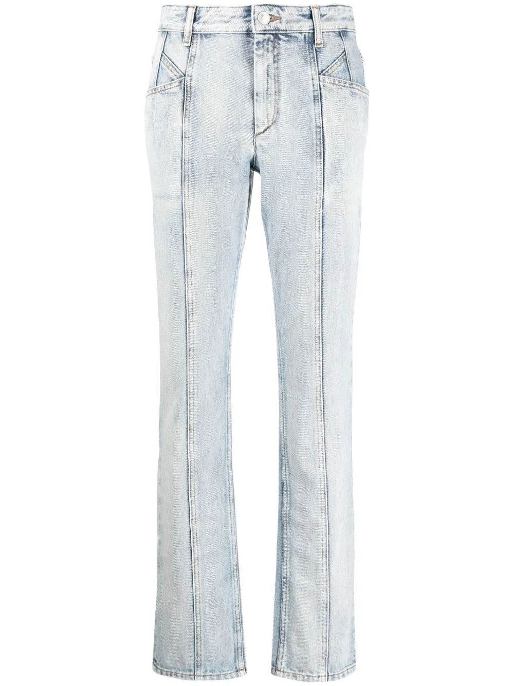 Laora straight-leg jeans Highlights - Light blue - Cotton - Denim - Seam detailing - Mid-rise - Straight leg - Concealed fly and button fastening - Two front patch pockets - Two rear patch pockets - Straight hem Made in France Composition Outer: Cotton 100% Lining: Cotton 100% SIZE & FIT Model measurements Height 5 ft 9 in(1.75 m) Bust/Chest 31.49 in(80 cm) Hips 34.05 in(86.5 cm) Waist 24.21 in(61.5 cm) Measurement FRONT RISE 9.44 in(24 cm) HIPS 34.64 in(88 cm) WAIST 30.7 in(78 cm) FittingInformation Designed for a slim fit, these jeans offer a close fit at the waist and sit just away from the leg Sturdy and hard-wearing, this denim piece offers no stretch This piece fits true to size – take your usual size