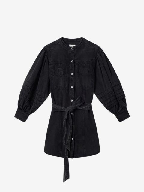 Striped cotton voile shirt dress Shirt collar Long sleeves with buttoned cuffs Button tab in the front middle Patch pocket with buttoned flaps on the chest Buttoned sides and comfort pleat Oversized cut and rounded hem Style: RO1005FAD1H04E02FK LAURANE 100% cotton Care & Sustainability Machine wash on a gentle cycle, inside out and at a maximum temperature of 30°C For more details, see the instructions on the composition label the history and environmental impact of this product