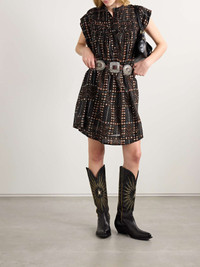 Leazali pintucked printed cotton-voile mini dress Black
