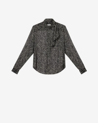Lightweight printed muslin blouse Stand-up collar with pussy bow Long sleeves with buttoned cuffs Asymmetrical opening Flowing cut Style: HT0847FAD1J08EBKEC LEONA 100% viscose Care & Sustainability Dry clean only For more details, see the instructions on the composition label the history and environmental impact of this product