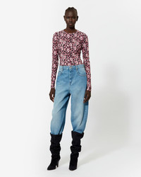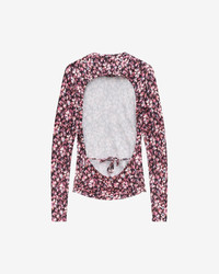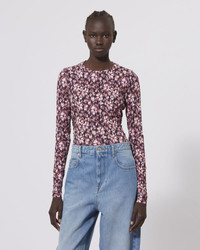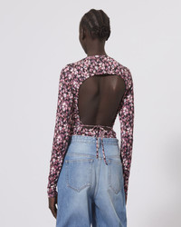 Printed top with long sleeves Open back Reference: HT0258FA-A3K78E LEONIO 95% Viscose, 5% Elastane FITTING ADVICE Fits true to size The model is wearing a size FR 38 and she is 1m77