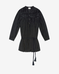 100% cotton Striped cotton short dress with puffed sleeves Button closure at front Gathers and pleats on front Removabe rope at waist Style: RO0337FAB1I04E02FK LEOZI