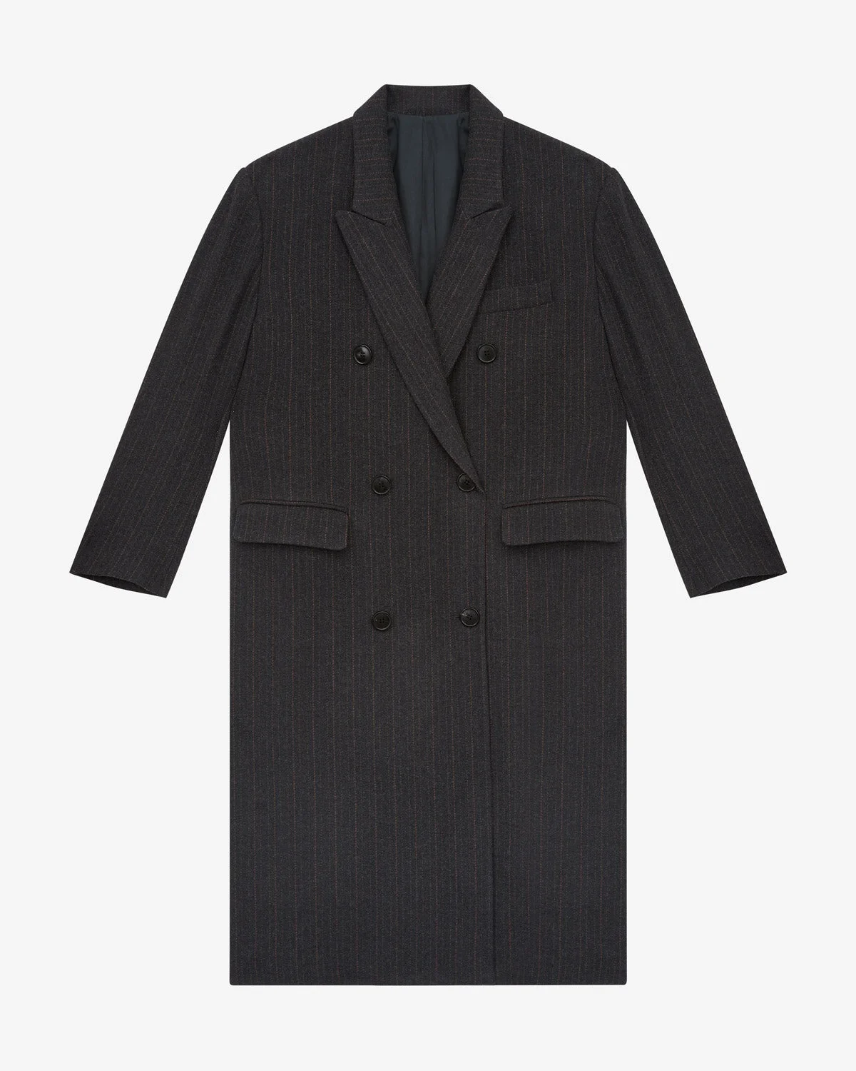 Long wool blend coat Italian suit collar Long sleeves Buttoned crossover front Chest pocket Flap pockets Loose fit Style: MA0285FB-B3D06E LEXANA 66% wool, 33% polyamide, 1% elastane