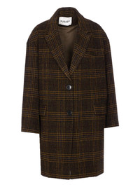 checked V-neck wool single breasted coat Highlights - Brown - Checked pattern - V-neck - Button closure - Front flap pockets - Wool Imported Composition Wool 100% Washing instructions Read Manufacturer Guidelines