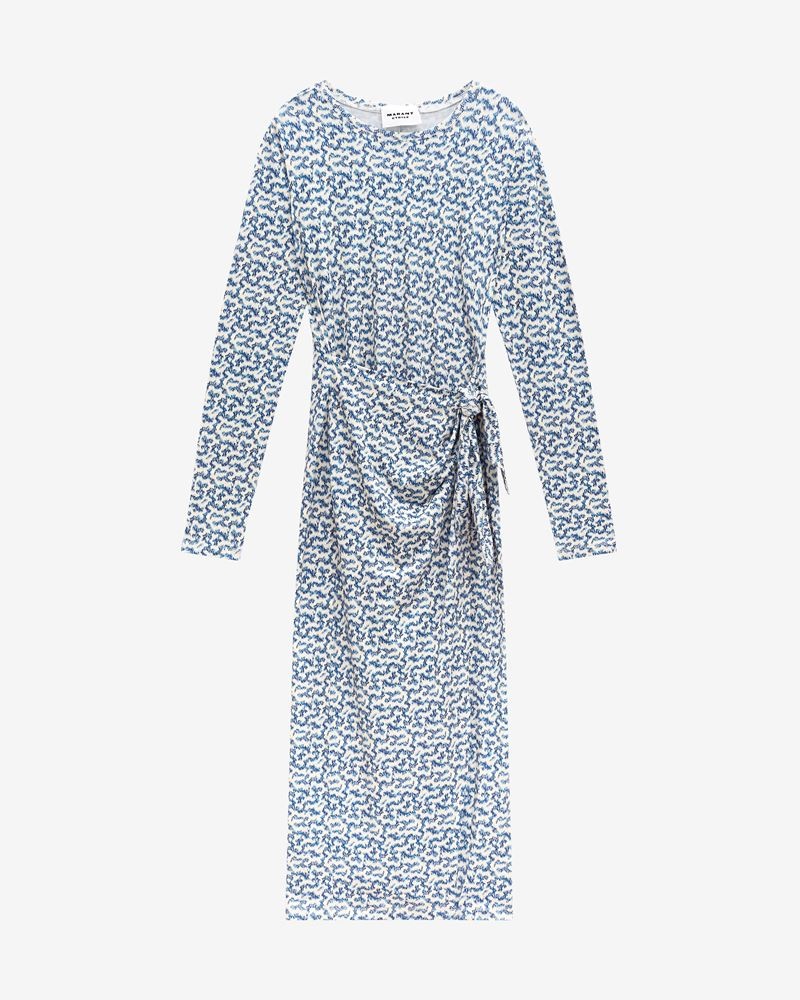 Blue and ecru dress with long sleeves Reference: RO0209FA-A3K78E LISY 95% Viscose, 5% Elastane FITTING ADVICE Fits true to size The model is wearing a size FR 38 and she is 1m77