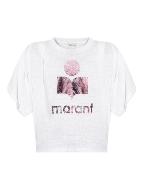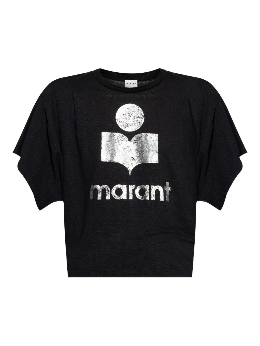 logo-print t-shirt Highlights - Black - Metallic logo print - Short sleeves - Cropped hem - Round neck Imported Composition Linen/Flax 100% Washing instructions Read Manufacturer Guidelines