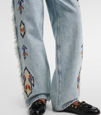 Hailing from Paris, Marant Etoile captures the art of French nonchalance through breezy yet polished staples. The Maella jeans feature fringed trims and colorful embroidery on the straight-leg silhouette. Product Details - Material: 100% cotton - Care instructions: machine wash at 30 degrees - Made in Morocco - Color: blue - Designer color name: Light Blue - Pocket lining: 65% polyester, 35% cotton - Embroidery: 100% polyester - Belt loops - Pockets: five pockets - Closure: zipper fly, button fastening - Fringed edges - Item number: P01132223 Size & Fit - True to size - Non-stretchy fabric - Straight leg - Mid-rise - The model seen in the picture is 178cm-5'10" and wearing a size FR 36