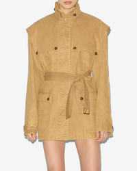 Plain-colored cotton workwear jacket Round collar with button tab Buttoned front flaps Done up in front with hidden buttons Patch pockets on the chest Patch pockets with buttoned flaps Rear flap Loops and removable belt Metal buckle and eyelets Straight cut Style: VE0513FAC3G02E50BZ MALIKA 100% cotton