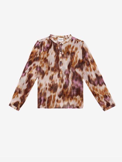 Blouse in printed cotton voile Round neckline Button tab Shoulder yokes Long sleeves Tapered buttoned cuffs Relaxed fit Style: HT0029FAB1J07EPELI MARIA 100% cotton