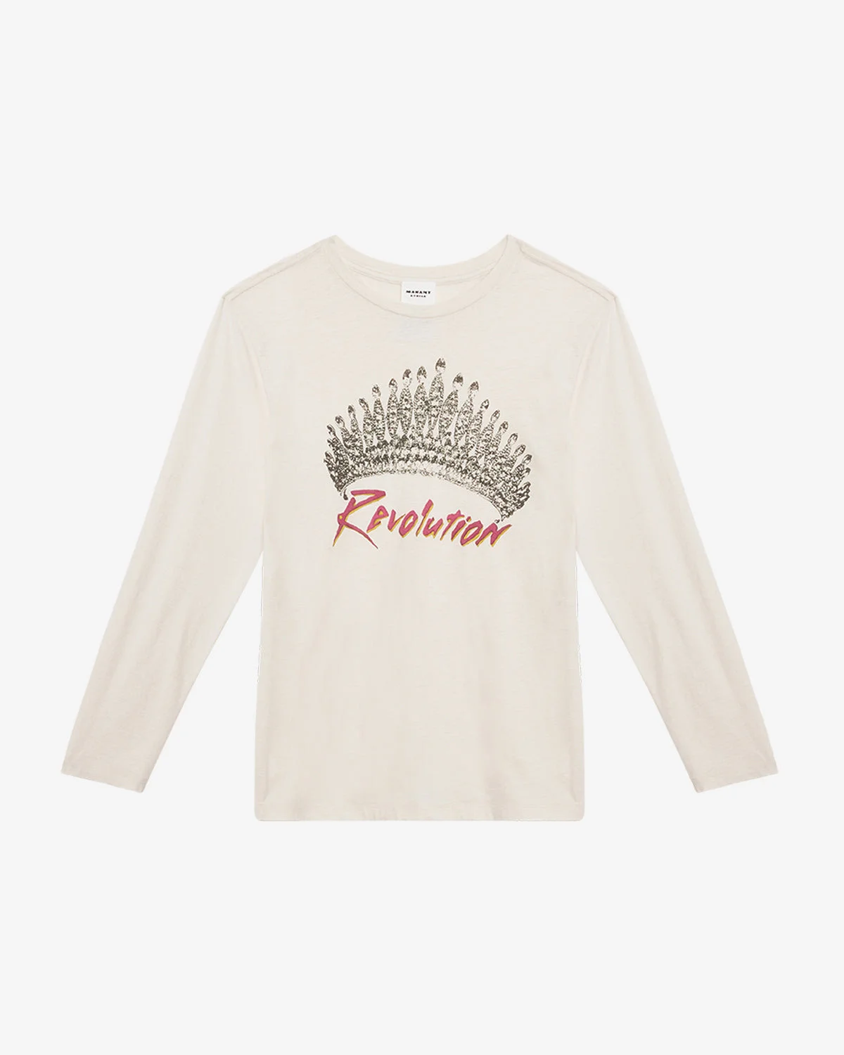 Printed cotton T-shirt Round neckline with ribbed finishes Long sleeves Printed pattern and "Revolution" inscription in front Straight cut Style: TS0245FAC3N05E23EC MARTINE 100% cotton