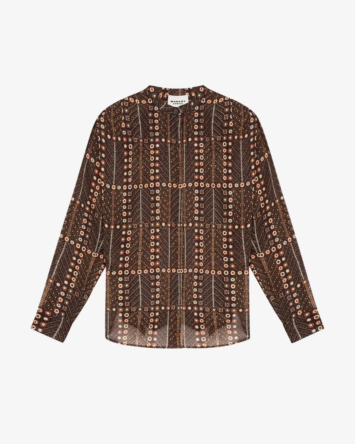Blouse in printed cotton voile Round neck Buttoned front Patch pocket on the chest Gathered shoulders Long sleeves Straight buttoned cuffs Straight cut Style: HT0028FAC1J19E02FK MEXIKA 100% cotton