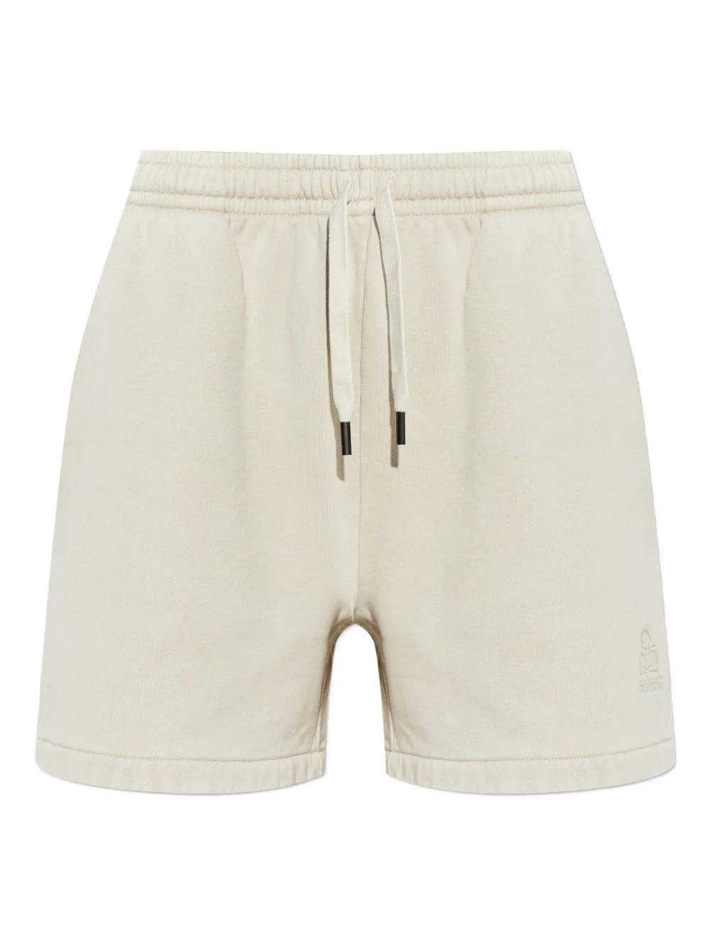 Miranae logo-embroired track shorts Highlights - Beige - Drawstring waist - Logo detail - Side seam pockets - Rear patch pocket Imported Composition Cotton 88%, Polyester 12% Washing instructions Read Manufacturer Guidelines