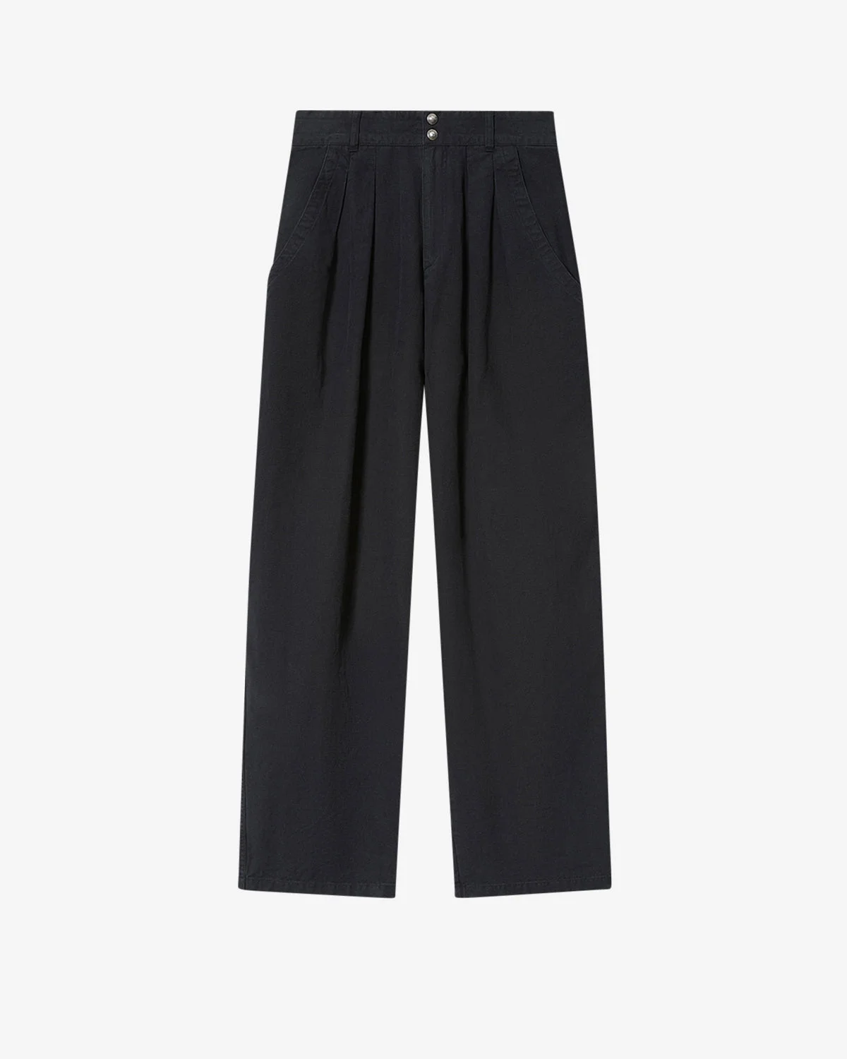 Pleated relaxed fit workwear pants Flowing cotton and linen Fitted waistband with topstitches and loops Engraved snap buttons and a hidden zipper Large scoop pockets on the sides and single-welt pockets Wide legsStyle: PA0634FAD1G04E01BKC NADINE 80% cotton, 20% linen Care & Sustainability Machine wash on a gentle cycle, inside out and at a maximum temperature of 30°C For more details, see the instructions on the composition label the history and environmental impact of this product