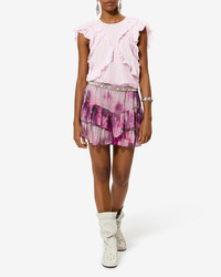 Frilly cotton voile top Round neckline Sleeveless Frills with an embroidered finish Buttoned teardrop-shaped opening in back Loose fit Style: HT0828FAB3J04E40LK NALOU 80% cotton (1), 20% viscose Care & Sustainability Dry clean only For more details, see the instructions on the composition label the history and environmental impact of this product