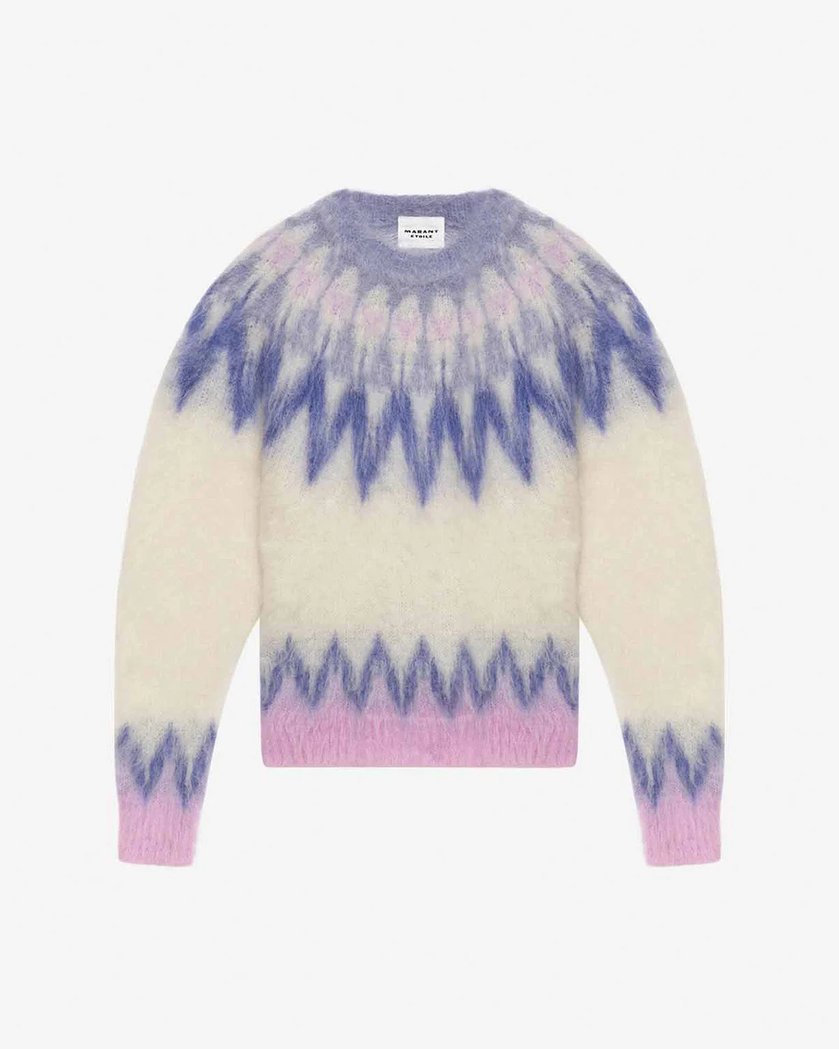 Mohair blend Fair Isle pattern sweater Round neckline Long sleeves Ribbed finishes Relaxed fit Style: PU0738FAC3L06E30BU NATANIA 31% wool, 28% super kid mohair, 22% polyamide, 19% mohair