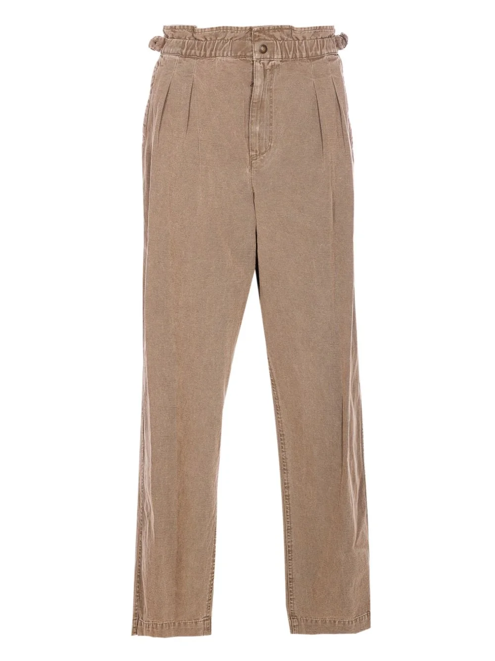 pleated trousers Highlights - Brown - Pleated front - Side pockets - Elasticated waistband Imported Composition Cotton 80%, Linen/Flax 20% Washing instructions Read Manufacturer Guidelines