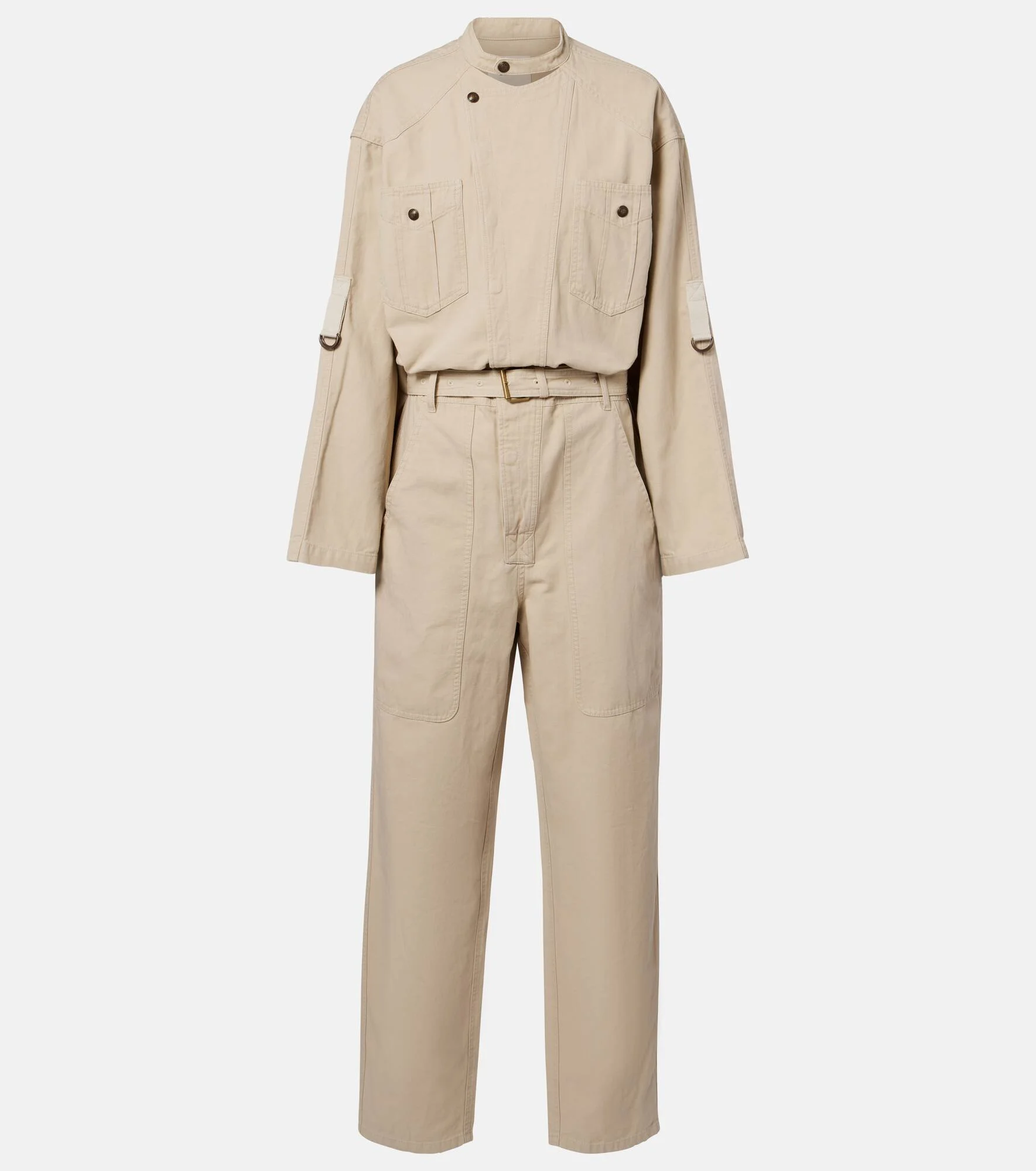 Hailing from Paris, Marant Etoile captures the art of French nonchalance through breezy yet polished staples. The Nessime jumpsuit is crafted from cotton and linen with a belted waist, utilitarian-inspired detailing, and myriad pockets. Product Details - Material: 80% cotton, 20% linen - Care instructions: machine wash at 30 degrees - Made in Tunisia - Designer color name: Beige - Item color: beige - Lining: 100% cotton - Closure: belted waist - Detachable belt - Item number: P01132116 Size & Fit - True to size - Dropped shoulders - Loose fit, comes with belt - Non-stretchy fabric - Straight leg - The model seen in the picture is 178cm-5'10" and wearing a size FR 36
