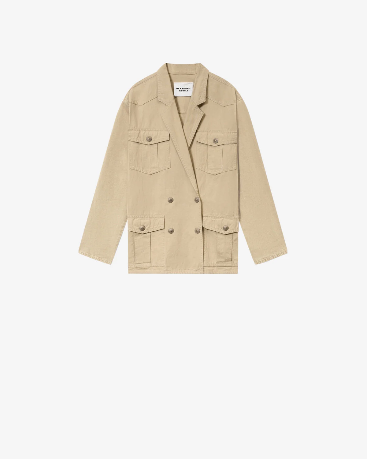 Cotton and linen workwear jacket Shirt collar Snap-fastened front Long sleeves 4 patch pockets with snap-fastened flaps Straight cut Style: VE0625FAD1G04E90BE NEVALA 80% cotton, 20% linen Care & Sustainability Machine wash on a gentle cycle, inside out and at a maximum temperature of 30°C For more details, see the instructions on the composition label the history and environmental impact of this product