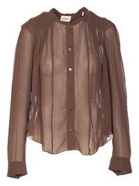 button-front sheer shirt Highlights - Brown - Sheer fabric - Button closure - Long sleeves - Smocked shoulders - Crew neck Imported Composition Viscose 100% Washing instructions Read Manufacturer Guidelines