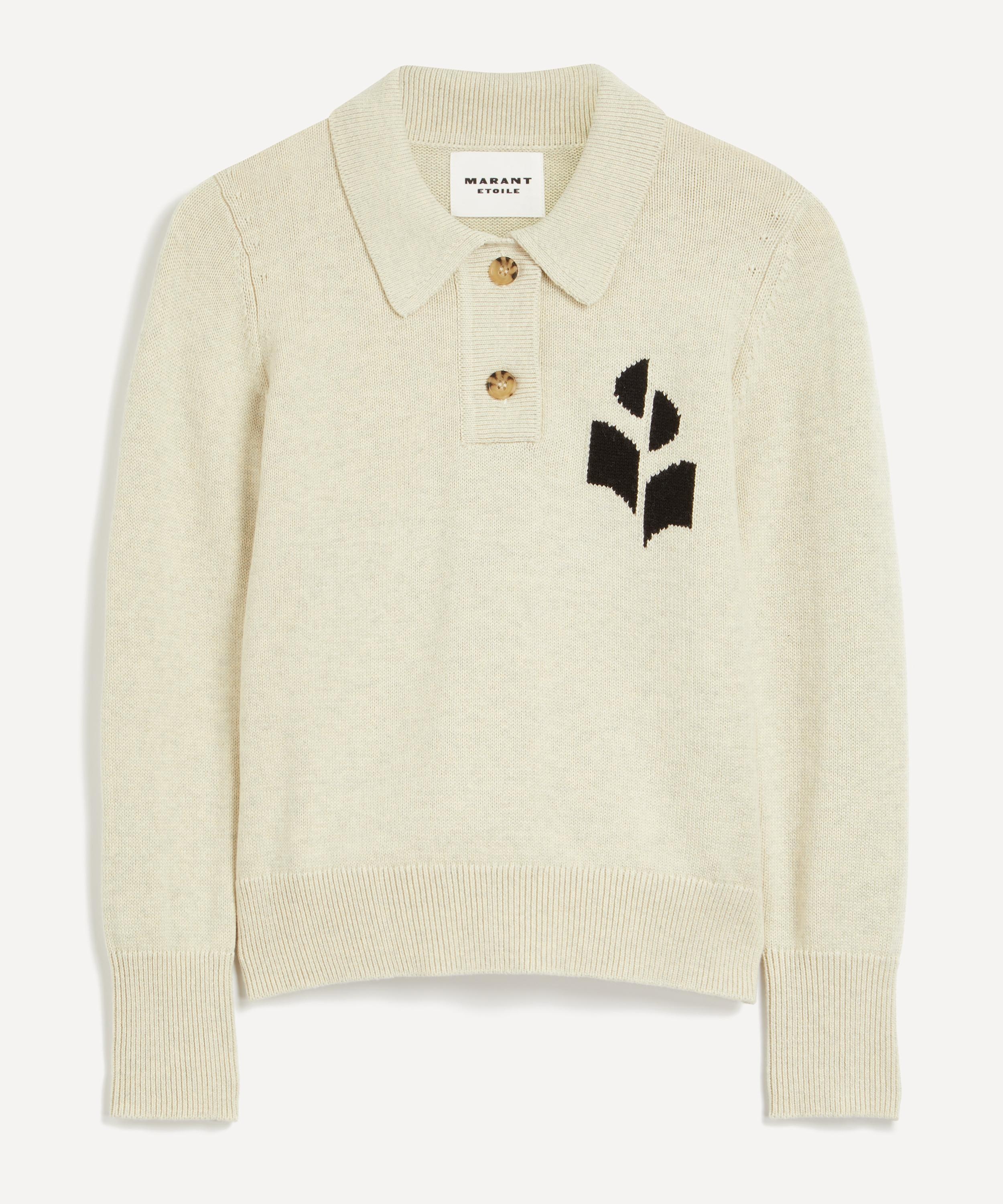 DETAILS Nola jumper Wool and cotton blend knit Regular fit Knit collar Two-button placket Jacquard-knit logo branding on chest Ribbed collar, cuffs and hem SIZE & FIT Model is 178cm/5'11"; Chest: 81cm; Waist: 66cm; Hips: 91cm and wears a size 8 COMPOSITION & CARE 70% Cotton; 30% Wool Hand wash cold