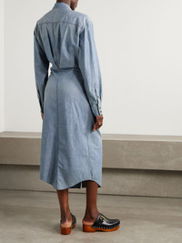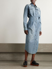 Defined by bohemian energy, Marant Etoile's collections are as comfortable as they are chic. This 'Nolwen' dress is cut from soft cotton-chambray in a shirt-inspired shape and has a fitted waist which gives way a pleated midi skirt. Wear yours with slouchy leather boots. Large to size. See Size & Fit notes. Size & Fit - Fits large to size, take one size smaller than normal - Designed for a slightly loose fit - Lightweight, non-stretchy fabric - Model is 177cm/ 5'10", normally wears a FR 36 and is wearing a FR 34 Model measurements: - Bust: 80cm/ 31.5" - Waist: 60cm/ 23.5" - Hip: 89cm/ 35" Details & Care - Blue cotton-chambray - Button fastenings through front - 80% cotton, 20% recycled cotton - Unlined - Machine wash