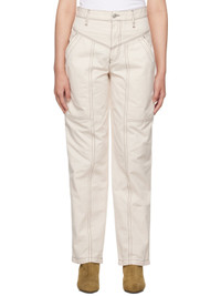Cotton canvas trousers. · Paneled construction · Belt loops · Four-pocket styling · Zip-fly · Contrast stitching in black Supplier color: Ecru 100% cotton. Made in Tunisia 232599F087000