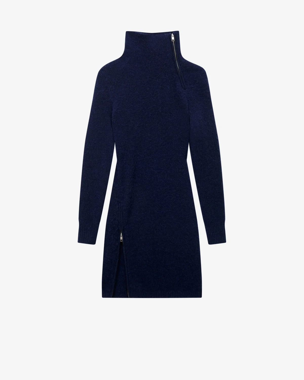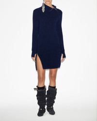 Short alpaca sweater dress Stand-up collar with an asymmetrical zipper Long sleeves Adjustable side slit with a visible zipper Silver metal details Fitted cut Style: RO0588FA-B3L04E OHARA 63% baby alpaca wool, 32% polyamide, 5% elastane