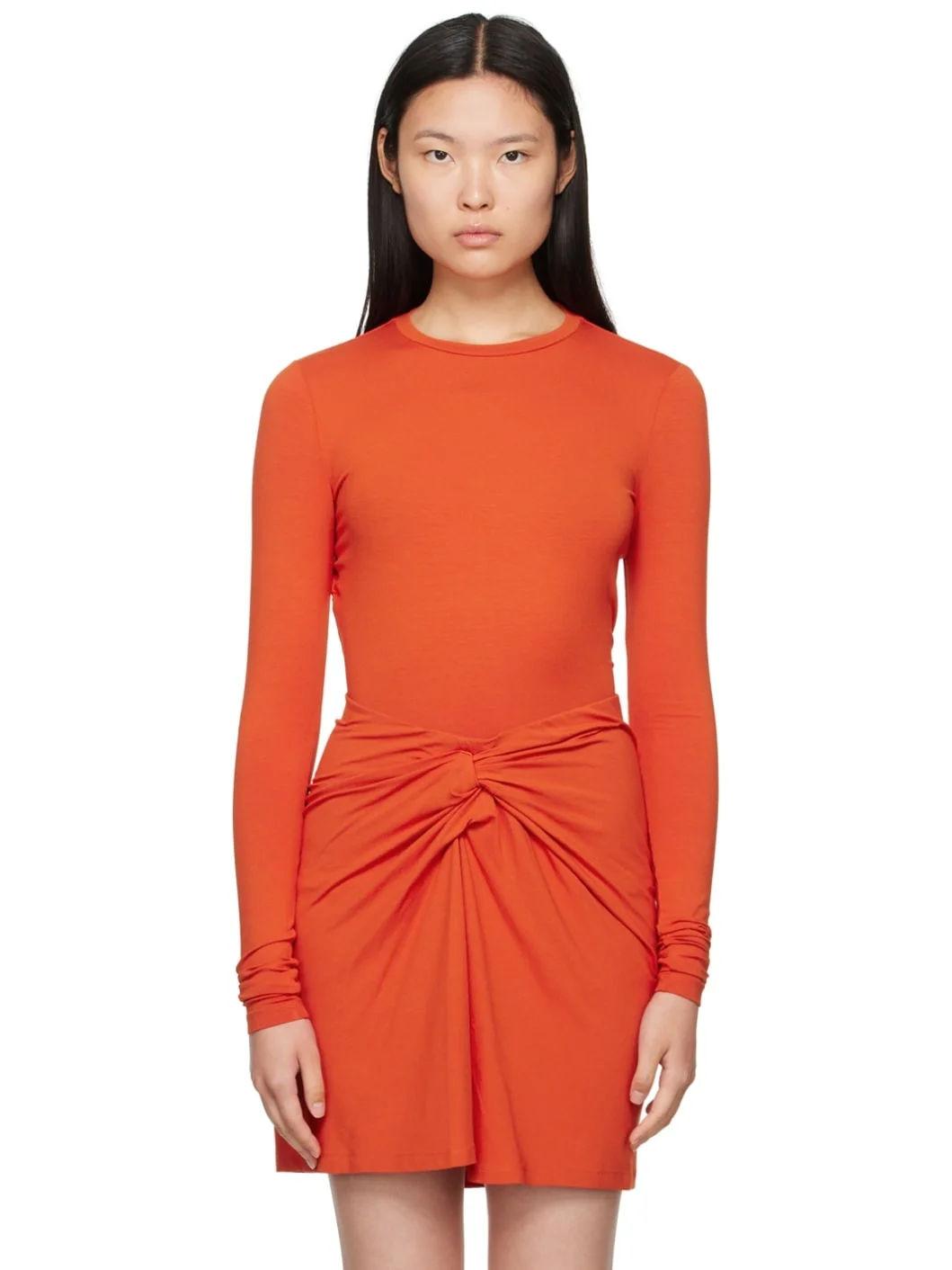 Stretch viscose jersey T-shirt. · Rib knit crewneck · Self-tie fastening at open back Supplier color: Orange 95% viscose, 5% elastane. Made in Bulgaria 232599F110001