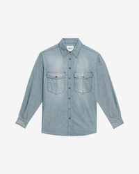 Cotton chambray shirt Shirt collar Long sleeves Straight buttoned cuffs Buttoned front Patch pockets with buttoned flaps Rounded hem Straight cut Style: CH0233FAC3G05E30BU OVELIA 80% cotton, 20% recycled cotton