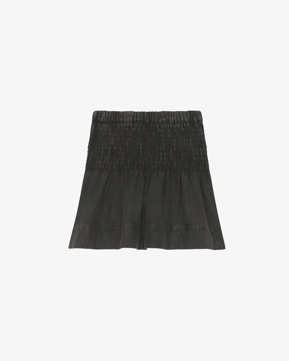 100% cotton Black short cotton skirt in washed fleece Elasticated smocked waist Style: JU0146FAB1M02E02FK PACIFICA