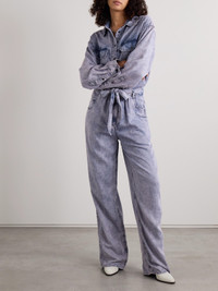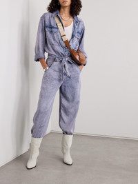 Paige Belted Acid-wash Lyocell-chambray Jumpsuit