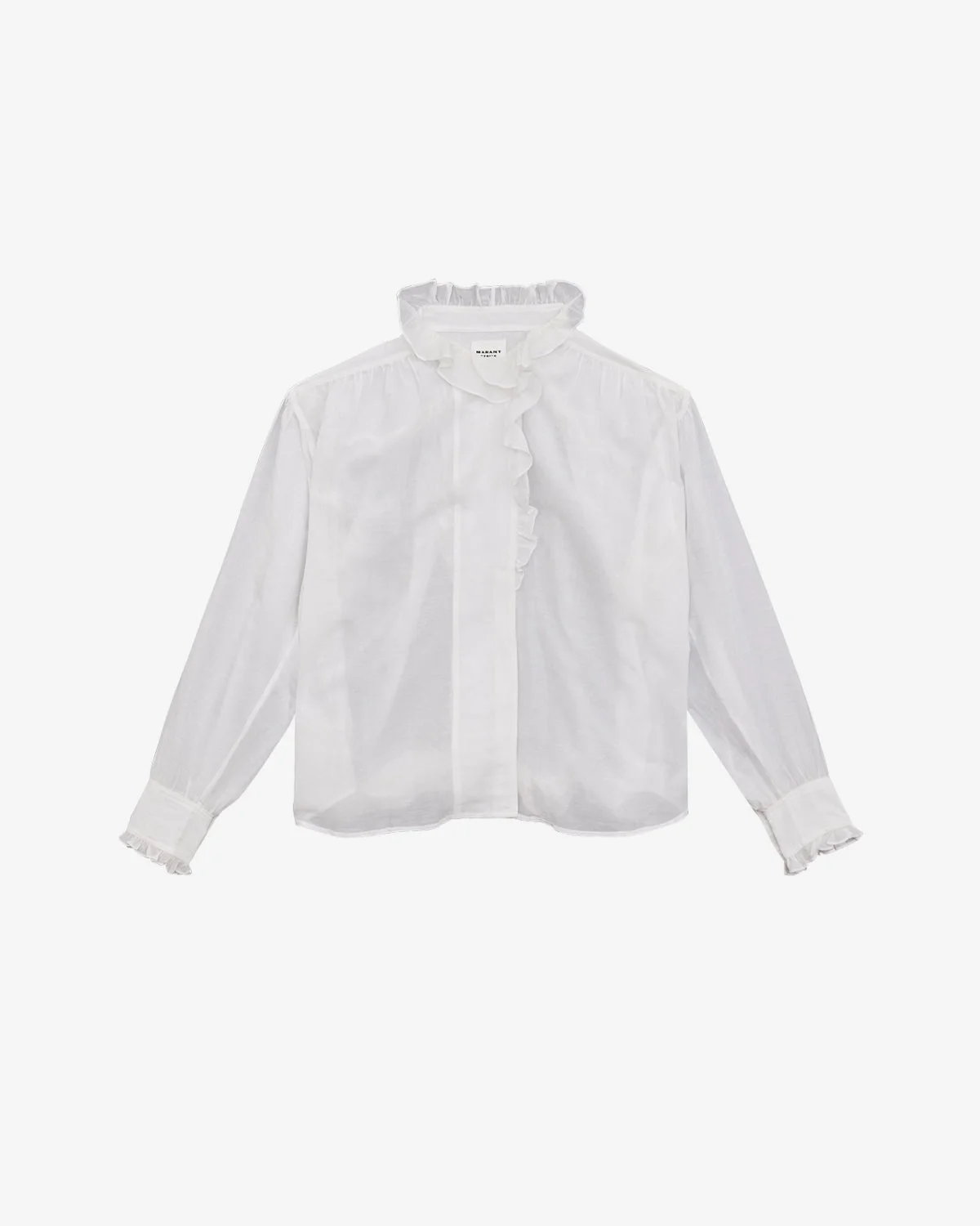 Top in frilly cotton voile Asymmetrical collar Shoulder yokes Long sleeves Asymmetrical hidden button tab Ruffled finishes Straight cut Style: HT0001FCB3J04E20WH PAMIAS 80% cotton, 20% viscose