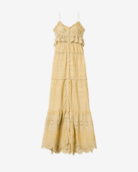 Long cotton and floral lace dress Low-cut V-neckline Thin adjustable straps Buttoned front Frills with a crochet finish and pintucks Lined Flared cut Style: RO0951FAD1J05E10LC PAULE 100% cotton (1) Care & Sustainability Machine wash on a gentle cycle, inside out and at a maximum temperature of 30°C For more details, see the instructions on the composition label the history and environmental impact of this product