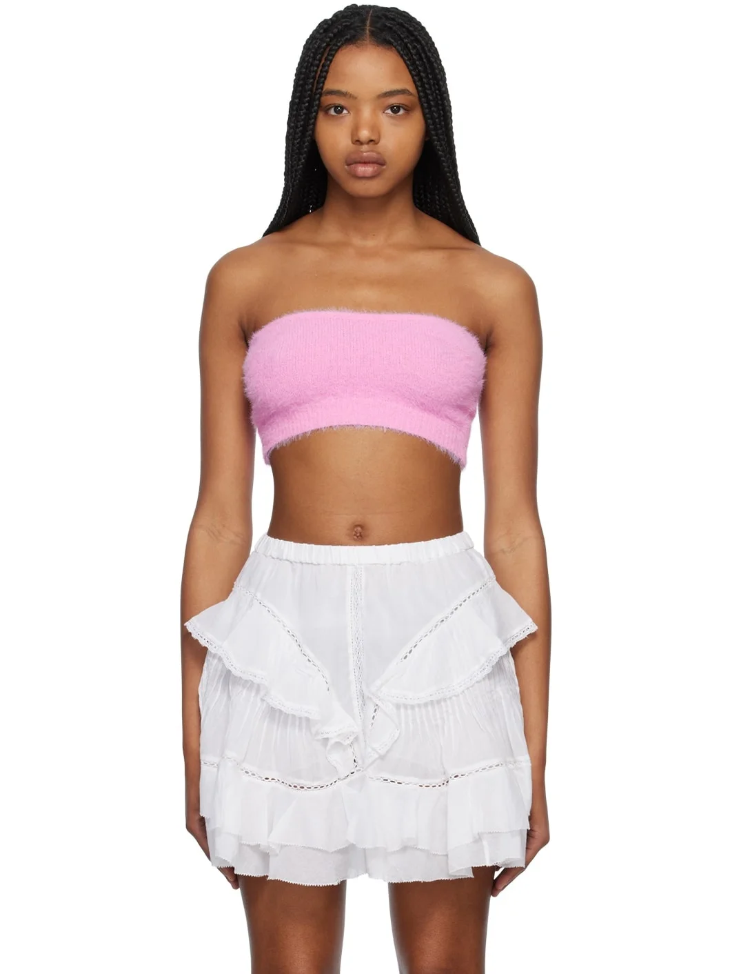 Shag knit nylon camisole. Rib knit sweetheart neck and cropped hem. Supplier color: Candy pink 100% polyamide. Made in Italy 231599F111014