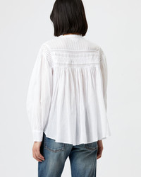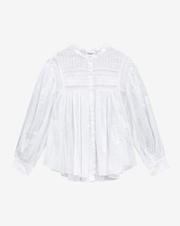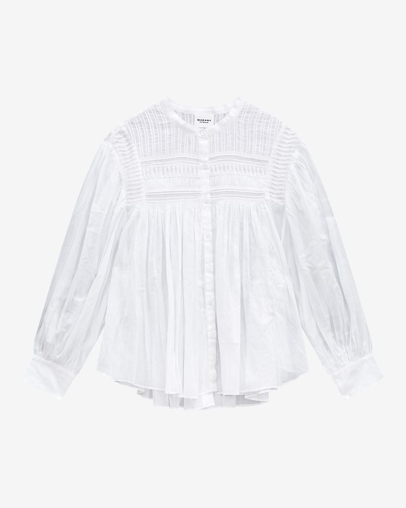 White cotton voile top with long sleeves Gathered top front Front button ta Reference: HT0002FA-A1J03E PLALIA 100% Cotton