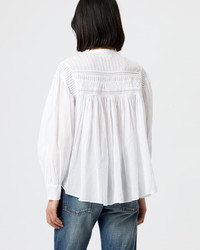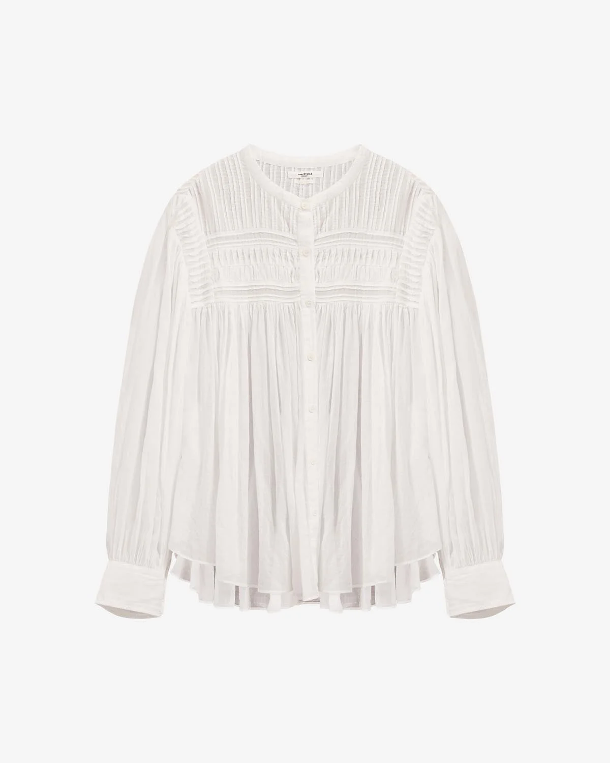 100% cotton White cotton voile top with long sleeves Gathered top front Front button ta Style: HT0002FA-A1J03E PLALIA