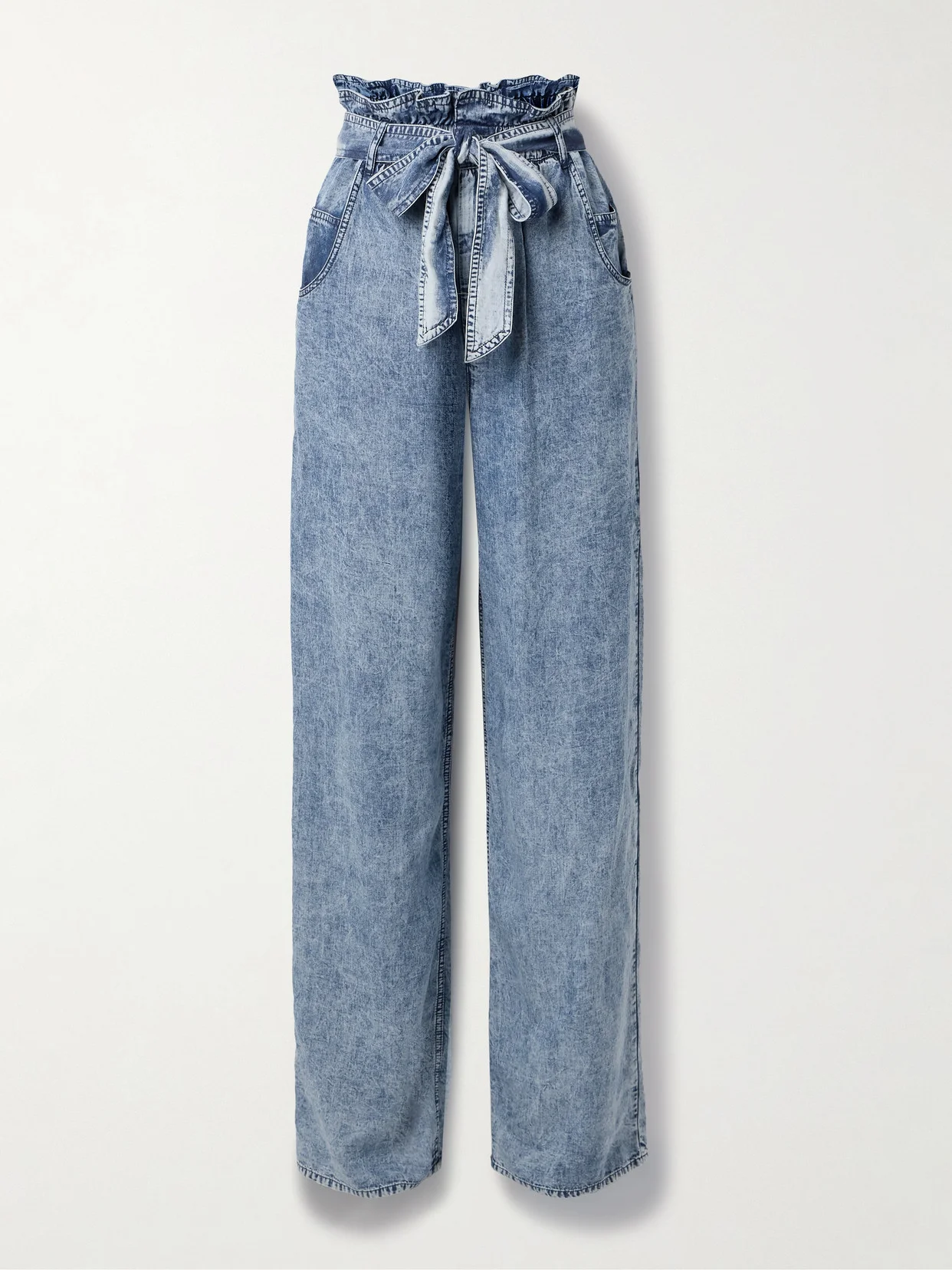 Isabel Marant's ‘Priana' pants are made from lightweight Lyocell-chambray. They have a high-rise waist threaded with a detachable self-tie belt that creates a paperbag-effect and falls to wide legs.