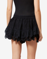 Short ruffled organic cotton and floral lace skort Tie strings with pompoms on sides of waist Pintucks and broderie anglaise Skater cut Style: SH0255FAD1J05E01BK PURIA 100% cotton (1) Care & Sustainability Machine wash on a gentle cycle, inside out and at a maximum temperature of 30°C For more details, see the instructions on the composition label the history and environmental impact of this product