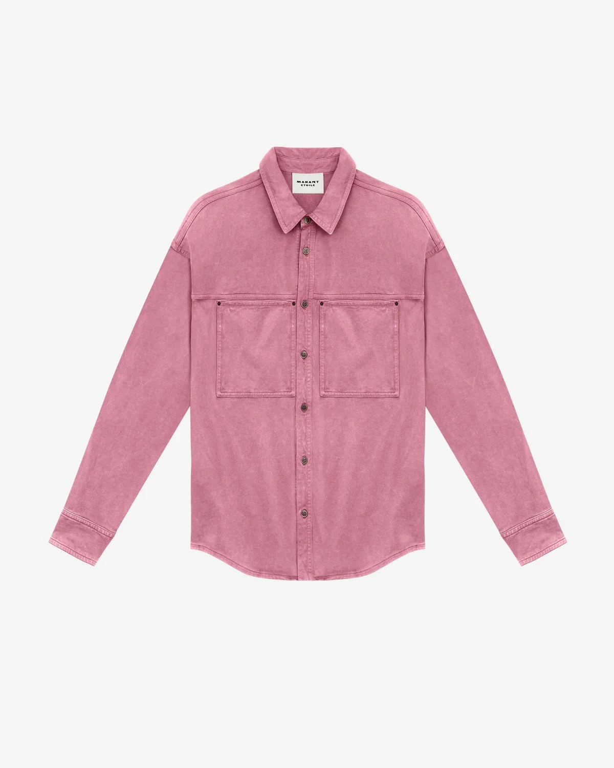 Shirt in faded cotton jersey Shirt collar Buttoned front Long sleeves Straight buttoned cuffs Patch pockets on the chest Tone-on-tone "Marant" logo embroidered on the pocket Metal rivets Rounded hem Straight cut Style: CH0206FAC1N06E40RW RAQUEL 100% cotton