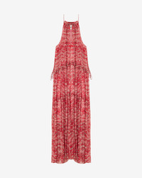 Flowing dress in gathered printed muslin American neckline Slit in front with strings Tie strings Strings with beads Gathers and seams Plain-colored lining Long flared cut Style: RO0669FAC1J07E70RD ALITA 100% viscose