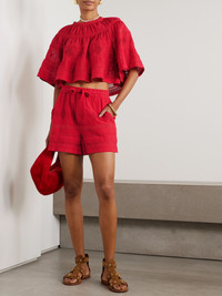 Damina crochet-trimmed broderie anglaise organic cotton-voile shorts Red