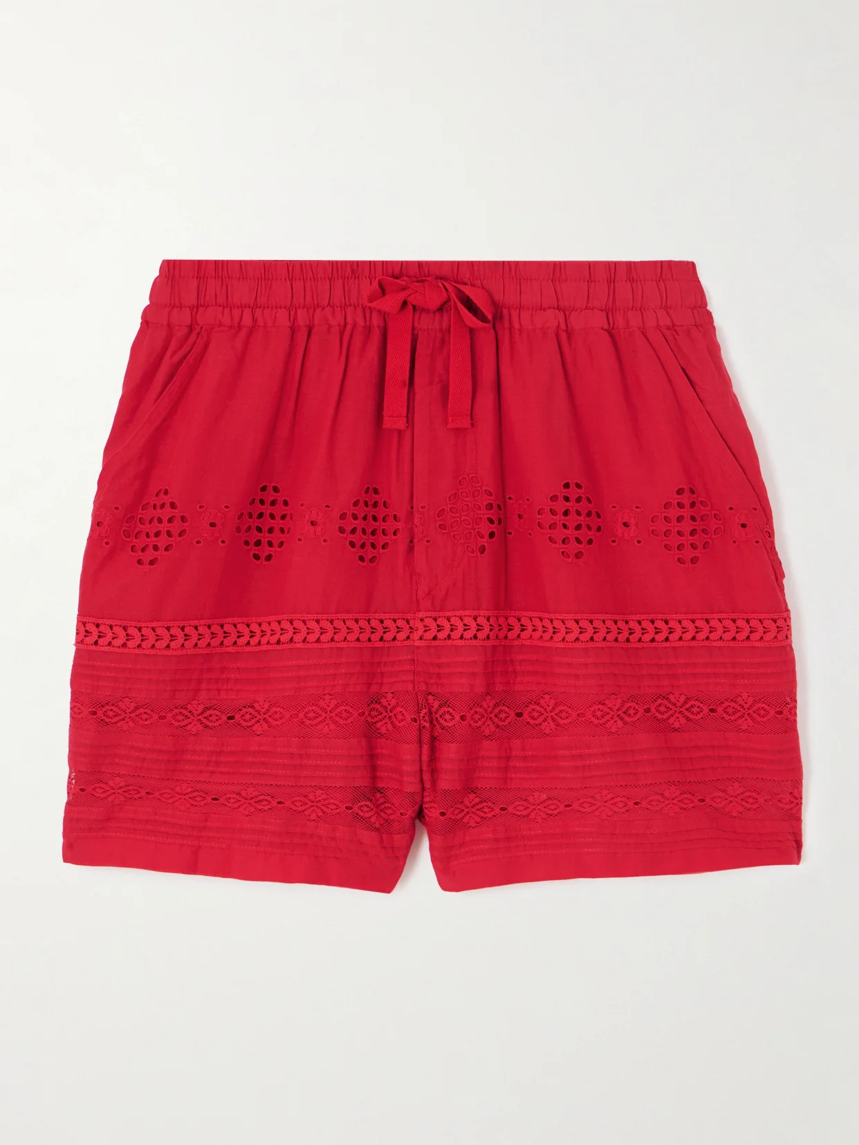 Marant Etoile's 'Damina' shorts are part of a set with the matching top in our edit, making vacation dressing even easier. Made from red broderie anglaise organic cotton-voile, they're traced with crochet trims and have a drawstring waistband.