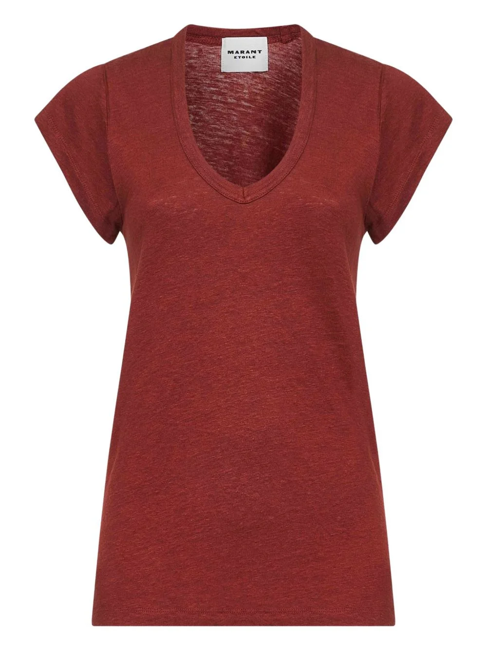 ribbed V-neck T-shirt Highlights - Red - Ribbed v-neck - Short sleeves - Straight hem - Linen Imported Composition Linen/Flax 100% Washing instructions Read Manufacturer Guidelines