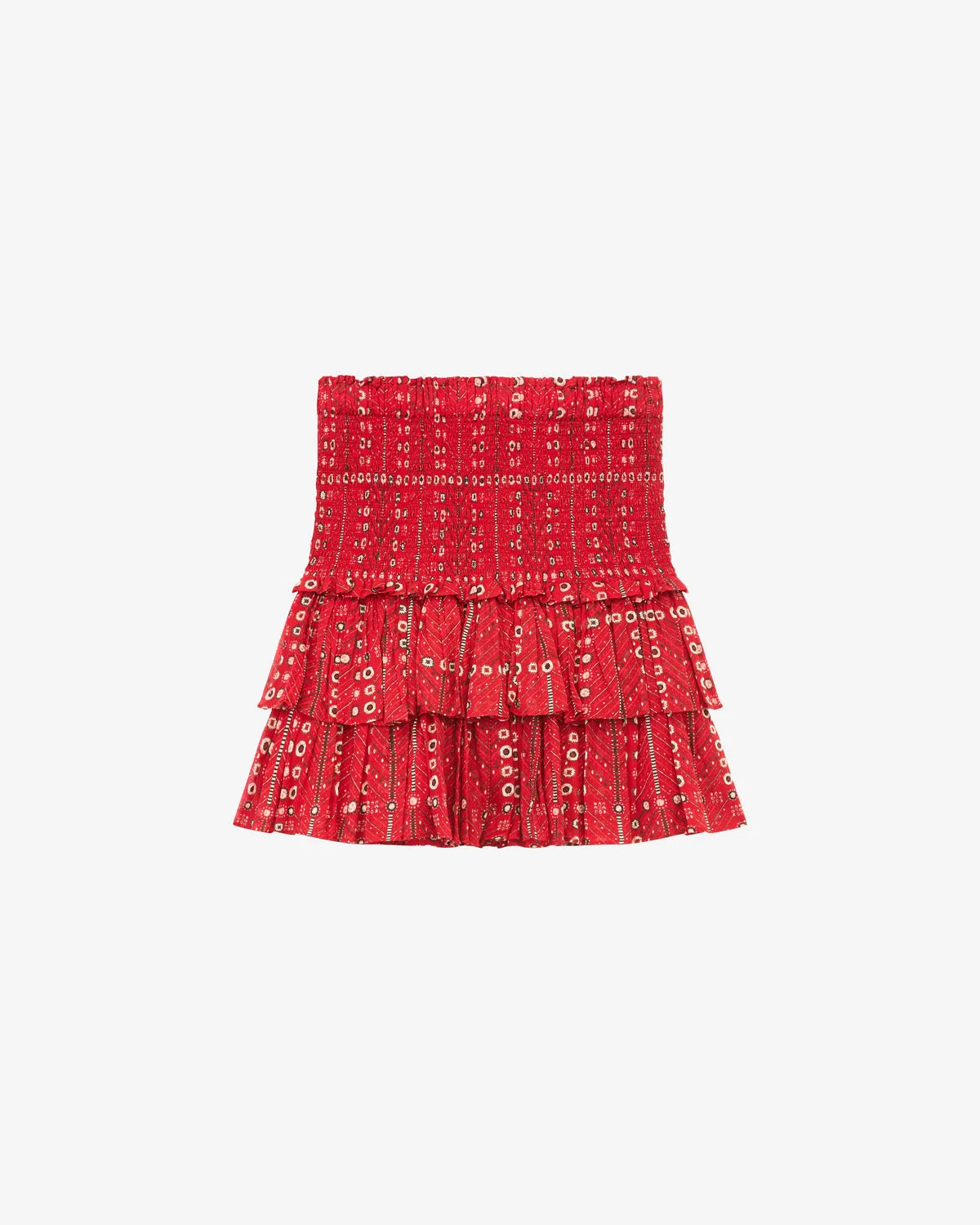 Skirt in printed smocked cotton voile Elastic waist Rows of frills Cotton lining Cropped with a high waist Style: JU0022FAC1J19E70RD NAOMI 100% cotton