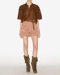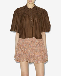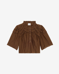 Gathered cotton voile blend top Round neckline with gathered finishes Buttoned front Gathered front and shoulder details Short loose sleeves Short and flared cut Style: HT0665FBB3J04E67DK CARMEN 80% cotton, 20% viscose