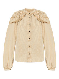 ruffled cotton shirt Highlights - Beige - Ruffled shoulders - Button fastening - Long sleeves - Crew neck Imported Composition Cotton 100% SIZE & FIT FittingInformation Designed to be unstructured, offering a loose fit throughout Washing instructions Read Manufacturer Guidelines