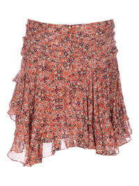 ruffled patterned mini skirt Highlights - Rust - Patterned print - Ruffled hem - Asymmetrical design - Concealed zip closure - Gathered waistband Imported Composition Viscose 100% Washing instructions Read Manufacturer Guidelines